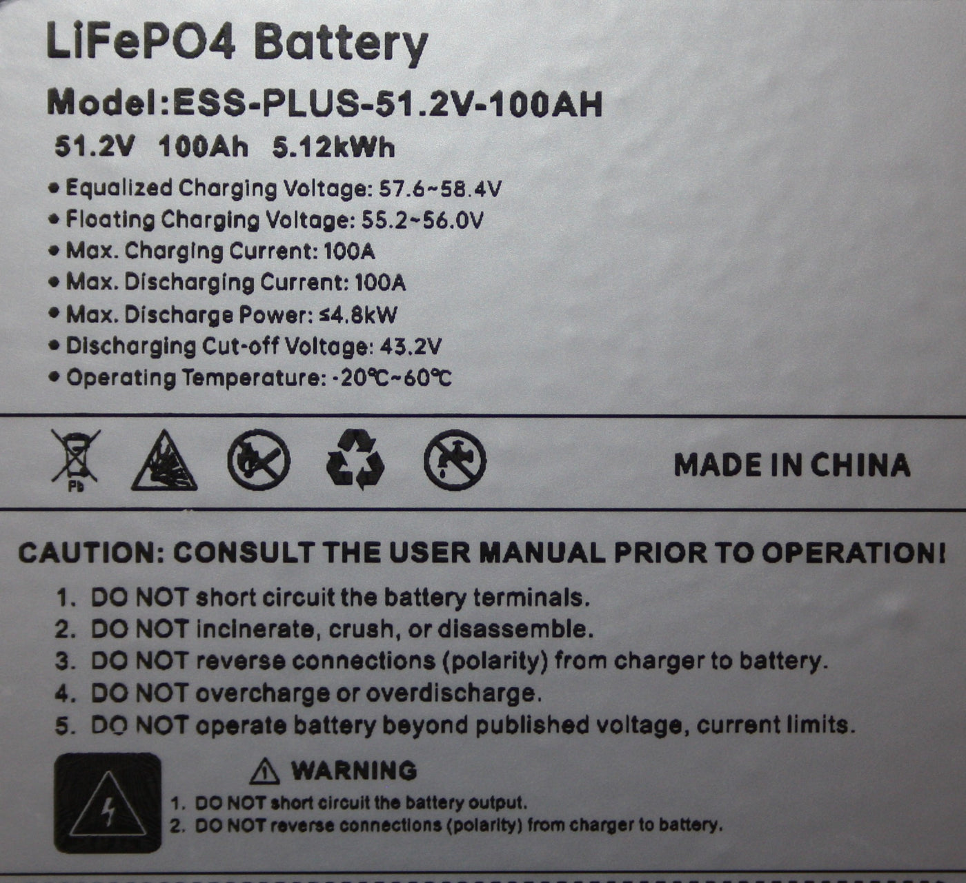 {"id":10434235662614,"title":"TheSunPays STACKABLE 5.1kWh 100aH Lithium Battery (stackable with 6.2kW dual AC-output Inverter \u0026 trolley - sold separately).","handle":"sacolar-ess-5-5-kwh-106-ah-16-cell-stackable-portable-lifepo4-battery-48-v-to-work-only-with-ess-inverter-ess-trolley-copy","description":"\u003cp\u003e\u003cspan style=\"text-decoration: underline;\"\u003e\u003cem\u003e\u003cstrong\u003eMODEL :\u003c\/strong\u003e\u003c\/em\u003e\u003c\/span\u003e ESS-PLUS-51.2V-100AH\u003c\/p\u003e\n\u003cul\u003e\n\u003cli\u003eTo work with ESS-PLUS-6.2KW-48V Inverter (available from our store at \u003ca href=\"https:\/\/shop.thesunpays.co.za\/collections\/axpert-inverters\/products\/portable-sacolar-ess-range-stackable-combo-includes-1-x-6kw-inverter-1-x-5-5kwh-106ah-lithium-battery-1-x-trolley-expandable-copy\" title=\"6.2kw stackable dual AC-output inverter\"\u003e\u003cspan style=\"color: rgb(255, 128, 0);\"\u003e\u003cem\u003eR5,995.00 incl VAT\u003c\/em\u003e\u003c\/span\u003e\u003c\/a\u003e), and trolley (available at \u003ca href=\"https:\/\/shop.thesunpays.co.za\/collections\/axpert-inverters\/products\/ess-ih-series-trolley-for-stacking-ess-series-inverters-ess-lithium-only-copy\" title=\"Baseplate trolley for 6.kw stackable inverter and 51.2V 100Ah battery\/batteries\"\u003e\u003cspan style=\"color: rgb(255, 128, 0);\"\u003e\u003cem\u003eR995.00 incl VAT\u003c\/em\u003e\u003c\/span\u003e\u003c\/a\u003e) \u003c\/li\u003e\n\u003cli\u003eNew \/ 1st life - LiFePO\u003csub\u003e4\u003c\/sub\u003e cells. 16 cell-battery.\u003c\/li\u003e\n\u003cli\u003eTop-mounted fold-flat carry handles.\u003c\/li\u003e\n\u003cli\u003eLow environmental impact.\u003c\/li\u003e\n\u003cli\u003eSuperior thermal stability.\u003c\/li\u003e\n\u003cli\u003eHigh peak power rating.\u003c\/li\u003e\n\u003cli\u003eLong cycle life.\u003c\/li\u003e\n\u003cli\u003eIntelligent Battery Management System (BMS).\u003c\/li\u003e\n\u003cli\u003eRS485 BMS communication.\u003c\/li\u003e\n\u003cli\u003eParallelable up to 4 batteries for \u003cstrong\u003e22kWh\u003c\/strong\u003e (@ R11995 per battery).\u003c\/li\u003e\n\u003cli\u003eCommunication between the battery and the charge controller ensures a long battery life.\u003c\/li\u003e\n\u003c\/ul\u003e\n\u003cp\u003e\u003cspan style=\"text-decoration: underline;\"\u003e\u003cstrong\u003eSpecifications : \u003c\/strong\u003e\u003c\/span\u003e\u003c\/p\u003e\n\u003ctable height=\"752\" style=\"width: 700px;\"\u003e\n\u003ctbody\u003e\n\u003ctr style=\"height: 19px;\"\u003e\n\u003ctd style=\"height: 19px; width: 306.906px;\"\u003e Battery Type \u003c\/td\u003e\n\u003ctd style=\"height: 19px; width: 377.094px;\"\u003eLifePO4\u003c\/td\u003e\n\u003c\/tr\u003e\n\u003ctr style=\"height: 19px;\"\u003e\n\u003ctd style=\"height: 19px; width: 306.906px;\"\u003eModel \u003c\/td\u003e\n\u003ctd style=\"height: 19px; width: 377.094px;\"\u003eESS--PLUS-51.2V-100AH\u003c\/td\u003e\n\u003c\/tr\u003e\n\u003ctr style=\"height: 19px;\"\u003e\n\u003ctd style=\"height: 19px; width: 306.906px;\"\u003eNominal Voltage \u003c\/td\u003e\n\u003ctd style=\"height: 19px; width: 377.094px;\"\u003e51.2V\u003c\/td\u003e\n\u003c\/tr\u003e\n\u003ctr style=\"height: 19px;\"\u003e\n\u003ctd style=\"height: 19px; width: 306.906px;\"\u003eNominal Capacity \u003c\/td\u003e\n\u003ctd style=\"height: 19px; width: 377.094px;\"\u003e100Ah\u003c\/td\u003e\n\u003c\/tr\u003e\n\u003ctr style=\"height: 19px;\"\u003e\n\u003ctd style=\"height: 19px; width: 306.906px;\"\u003eNominal Energy \u003c\/td\u003e\n\u003ctd style=\"height: 19px; width: 377.094px;\"\u003e5.1kWh\u003c\/td\u003e\n\u003c\/tr\u003e\n\u003ctr style=\"height: 19px;\"\u003e\n\u003ctd style=\"height: 19px; width: 306.906px;\"\u003eNet Weight\u003c\/td\u003e\n\u003ctd style=\"height: 19px; width: 377.094px;\"\u003e45KG \u003c\/td\u003e\n\u003c\/tr\u003e\n\u003ctr style=\"height: 19px;\"\u003e\n\u003ctd style=\"height: 19px; width: 306.906px;\"\u003eDimension (unboxed)\u003c\/td\u003e\n\u003ctd style=\"height: 19px; width: 377.094px;\"\u003e530 x 400 x 190mm \u003c\/td\u003e\n\u003c\/tr\u003e\n\u003ctr style=\"height: 19px;\"\u003e\n\u003ctd style=\"height: 19px; width: 306.906px;\"\u003eCombination method\u003c\/td\u003e\n\u003ctd style=\"height: 19px; width: 377.094px;\"\u003eStacking, floor standing\u003cbr\u003e\n\u003c\/td\u003e\n\u003c\/tr\u003e\n\u003ctr style=\"height: 19px;\"\u003e\n\u003ctd style=\"height: 19px; width: 306.906px;\"\u003eWorking Voltage\u003c\/td\u003e\n\u003ctd style=\"height: 19px; width: 377.094px;\"\u003e40~58.4V\u003c\/td\u003e\n\u003c\/tr\u003e\n\u003ctr style=\"height: 2px;\"\u003e\n\u003ctd style=\"height: 2px; width: 306.906px;\"\u003eOperating Temperature Discharging\n\u003cp\u003e\u003cbr\u003e\u003c\/p\u003e\n\u003c\/td\u003e\n\u003ctd style=\"height: 2px; width: 377.094px;\"\u003e-20~55\u003cspan\u003e°C\u003c\/span\u003e\n\u003c\/td\u003e\n\u003c\/tr\u003e\n\u003ctr style=\"height: 19px;\"\u003e\n\u003ctd style=\"height: 19px; width: 306.906px;\"\u003eOperating Temperature Charging \u003c\/td\u003e\n\u003ctd style=\"height: 19px; width: 377.094px;\"\u003e0~55\u003cspan\u003e°C\u003c\/span\u003e\n\u003c\/td\u003e\n\u003c\/tr\u003e\n\u003ctr style=\"height: 33px;\"\u003e\n\u003ctd style=\"height: 33px; width: 306.906px;\"\u003eMax. Discharge Current\u003c\/td\u003e\n\u003ctd style=\"height: 33px; width: 377.094px;\"\u003e100A\u003c\/td\u003e\n\u003c\/tr\u003e\n\u003ctr style=\"height: 19px;\"\u003e\n\u003ctd style=\"height: 19px; width: 306.906px;\"\u003eMax. Charge Current\u003c\/td\u003e\n\u003ctd style=\"height: 19px; width: 377.094px;\"\u003e100A\u003c\/td\u003e\n\u003c\/tr\u003e\n\u003ctr style=\"height: 19px;\"\u003e\n\u003ctd style=\"height: 19px; width: 306.906px;\"\u003eRecommended Charge Current\u003c\/td\u003e\n\u003ctd style=\"height: 19px; width: 377.094px;\"\u003e20A\u003c\/td\u003e\n\u003c\/tr\u003e\n\u003ctr style=\"height: 19px;\"\u003e\n\u003ctd style=\"height: 19px; width: 306.906px;\"\u003eTem